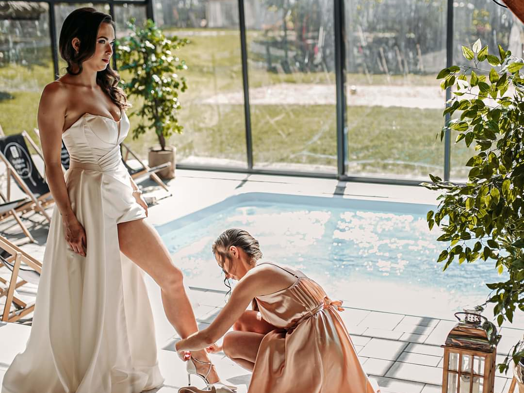 Zasada jest jedna: cały teren macie na wyłączność. Łącznie z atrakcjami na poprawiny: naszym sielskim wellness, basenem, balią. Macie pełną prywatność bez nieoczekiwanych gości.